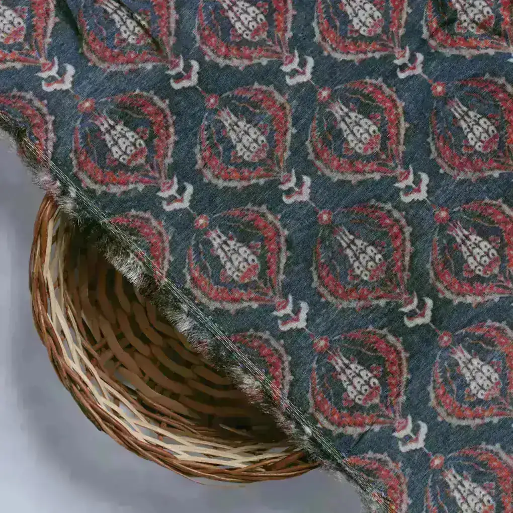 Blue Ogee Pattern Digital Printed Fabrics