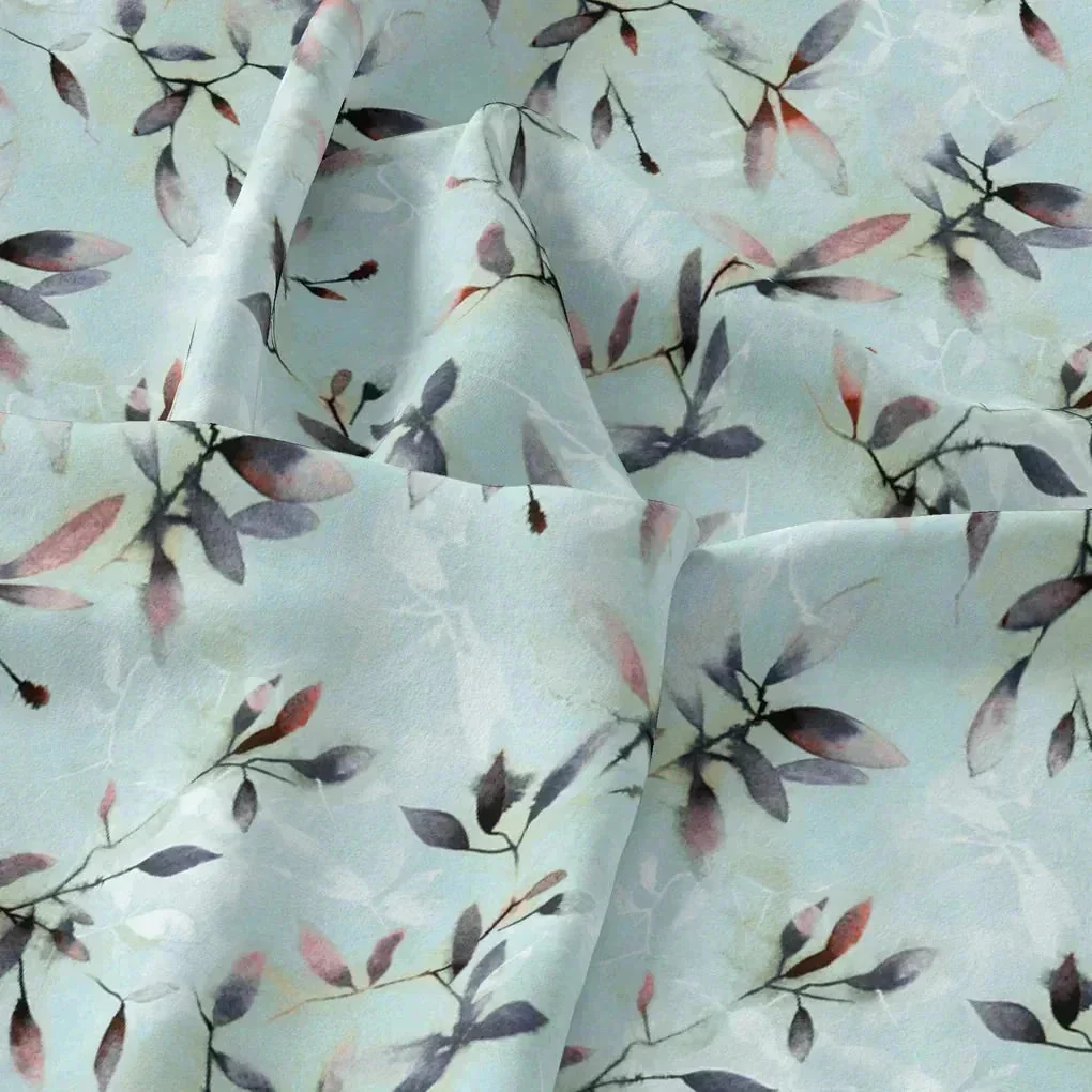 Bluish Thin And Light Leaves Digital Printed Fabric - Pure Cotton