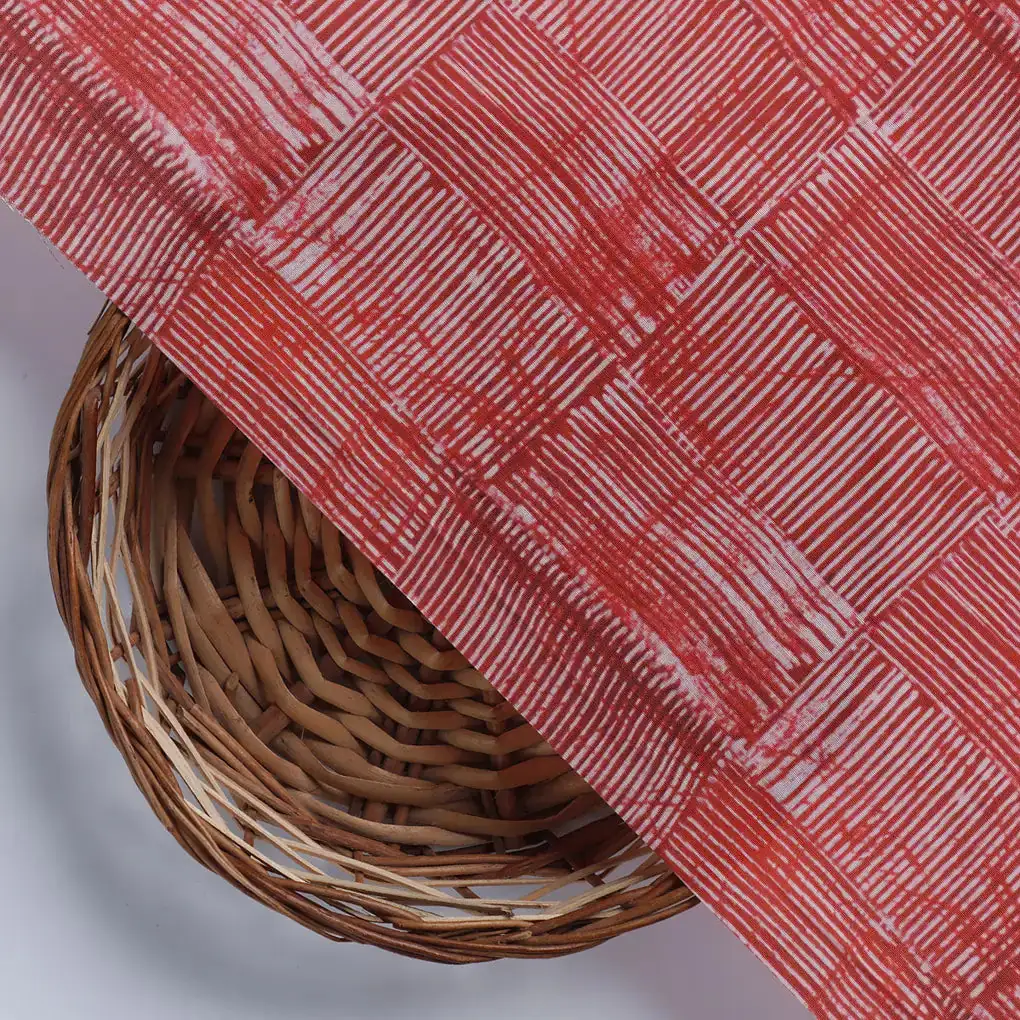 Checkes Textured Red And White Digital Printed Fabric - Muslin