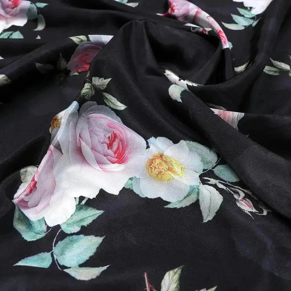 High Quality Multicolor Floral with Black Base Digitally Printed Fabrics