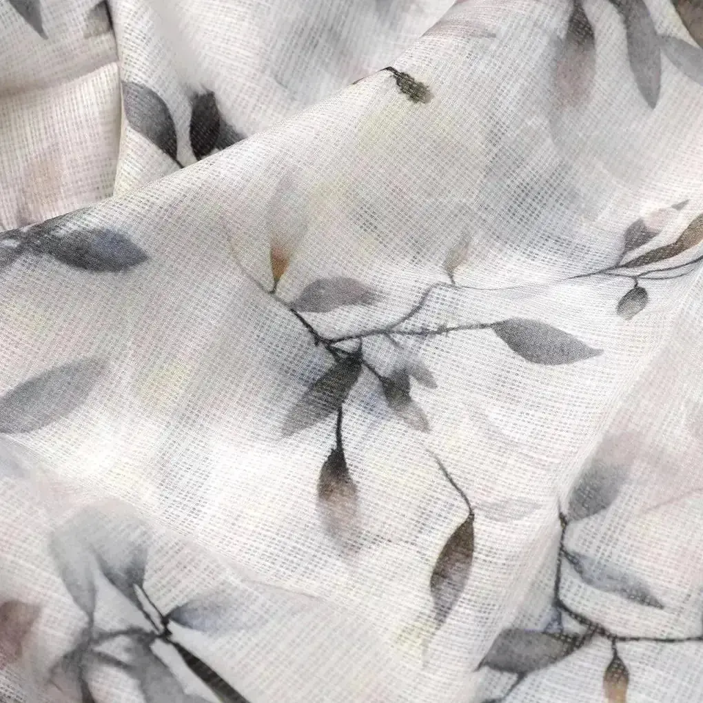 Leaves Laying Over Whilte Base Digital Printed Kota Doria Fabric