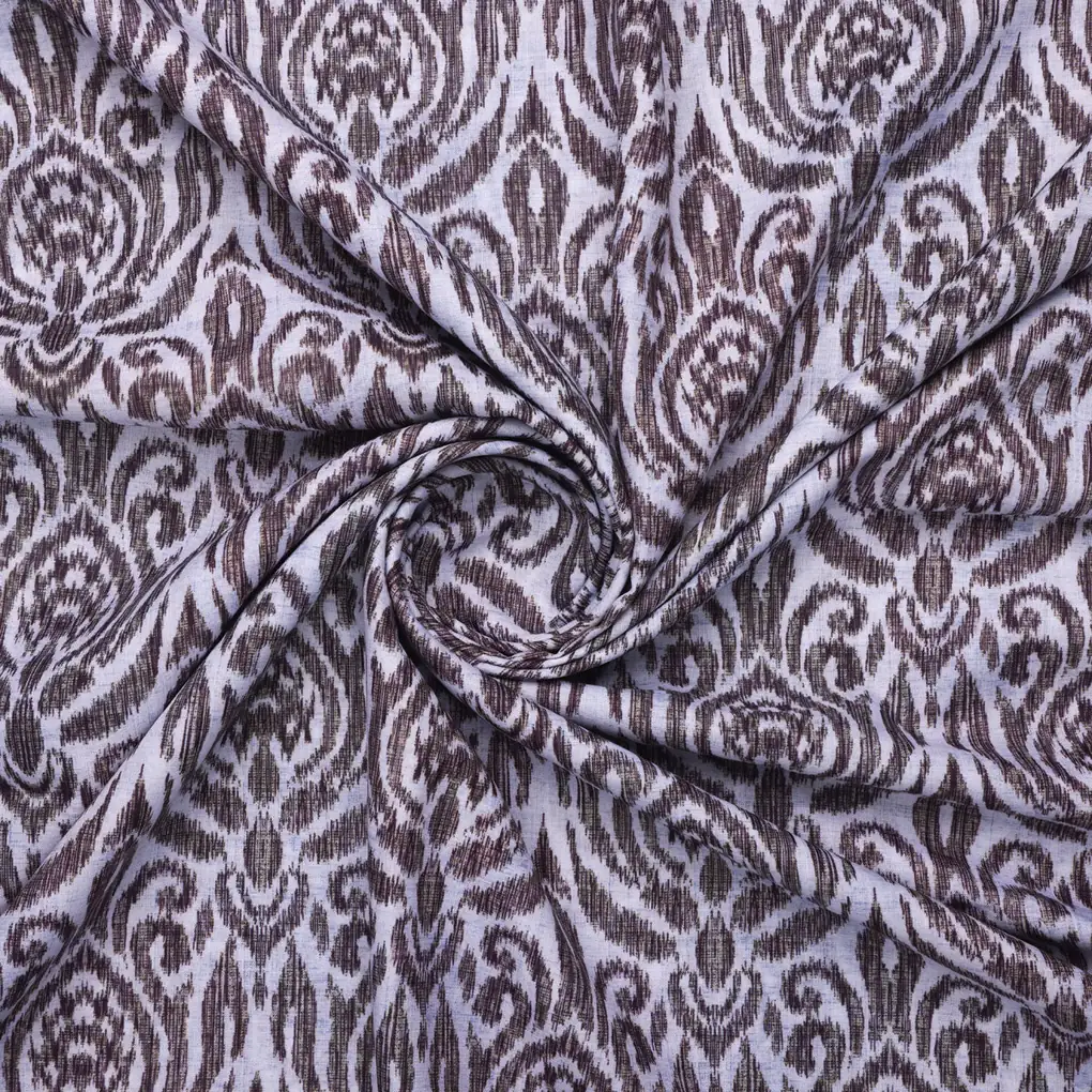 Linen Fabric with Damask Print