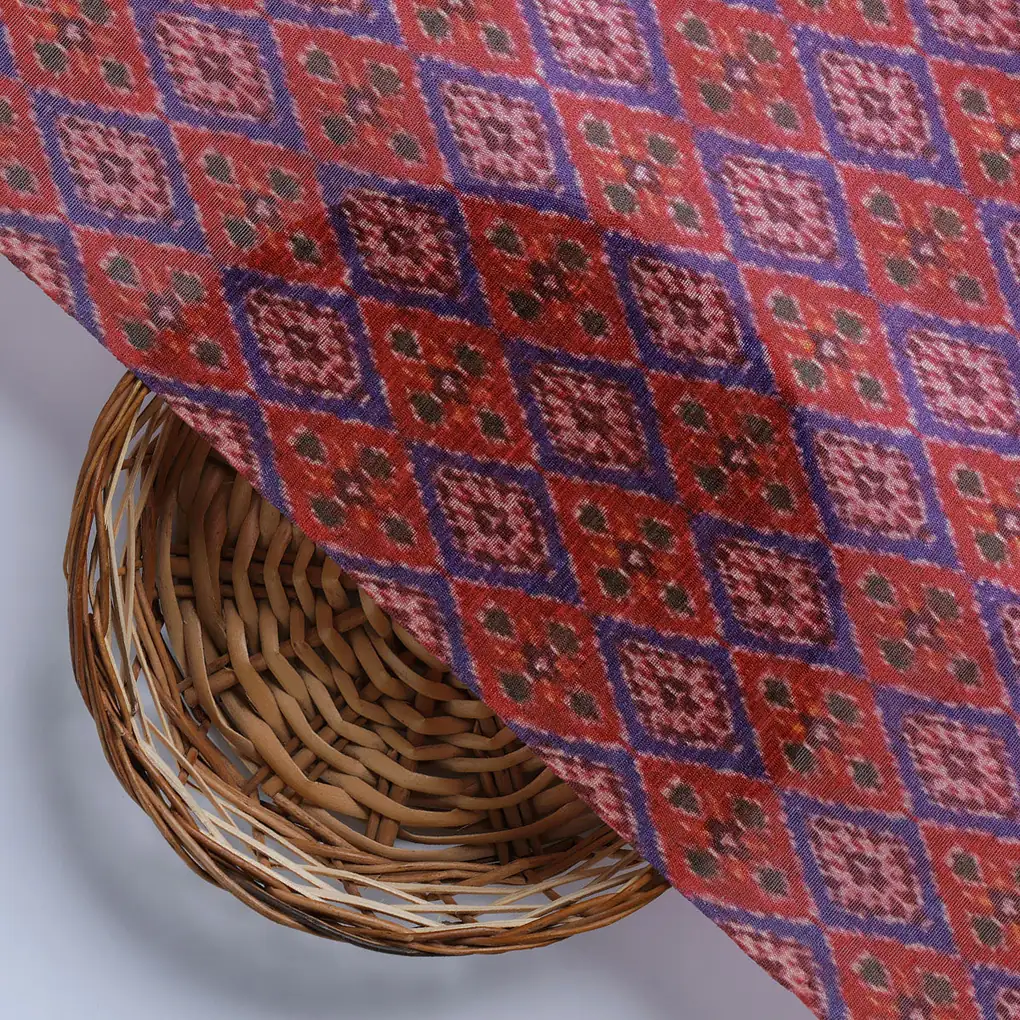 Maroon Ikat-Patola Type Pattern Design Printed Fabric