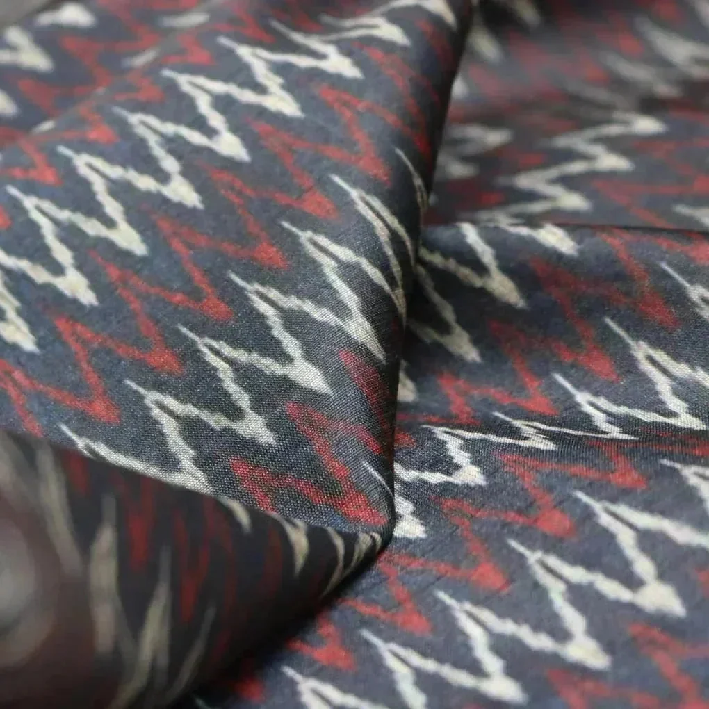 Make a statement with this Navy Blue Leheriya Tusser Silk Kurtis Printed Fabric from FAB VOGUE Studio. Crafted from a blend of polyester and tusser silk, this fabric will be a wardrobe staple. The chevron, zigzag and leheriya pattern adds an element of style to this fabric. Perfect for making kurtis, this fabric is sure to be a favorite in your wardrobe. Shop this fabric from FAB VOGUE Studio and add a touch of sophistication to your wardrobe.