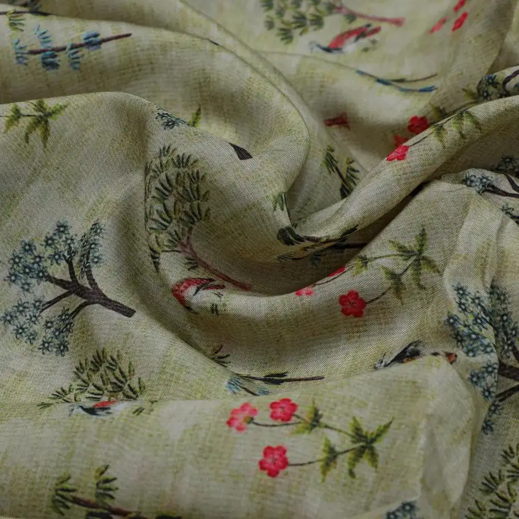 Pista Chinoiserie With Birds Digital Printed Fabric - Pure Muslin
