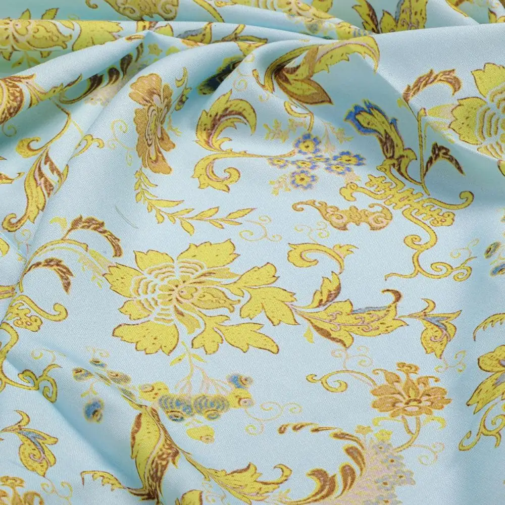 Royal Golden Flower Branch Digital Printed Fabric - Rayon